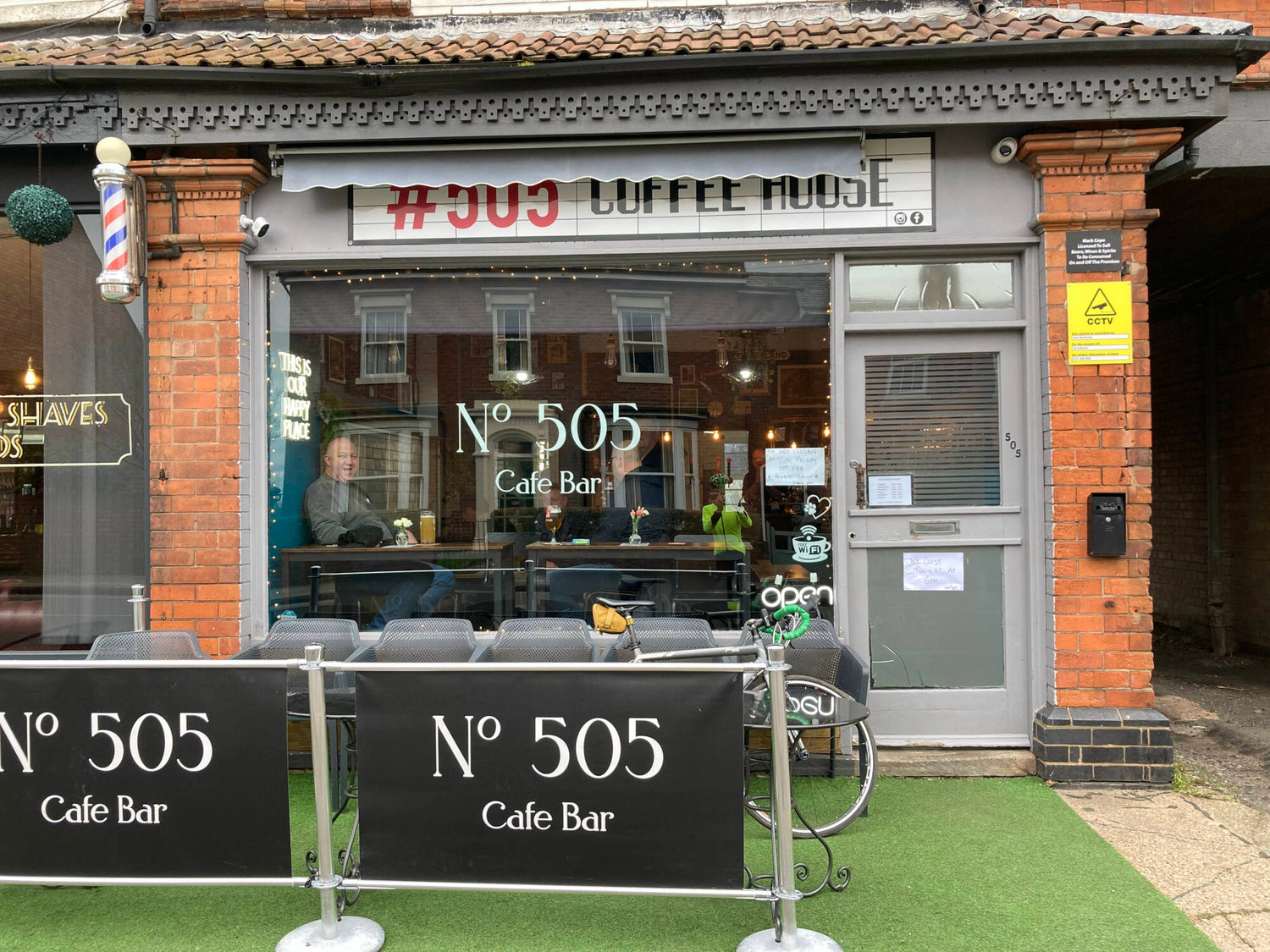 Fabulous cafe bar!! You can't miss the inviting kerb appeal or the atmosphere of people enjoying their evening as you passby or approach the door. No.505 is a go-to any time of day, with excellent coffee and cakes or a selection of draft beers and spirits in a very lovely, intimate, almost continental cafe bar setting. The new owner, Mark, has really put this place on the map for being a popular social hub, and it helps that he's an absolute gentleman. A warm welcome greets you. You're ensured of a fantastic service and always a friendly chat too